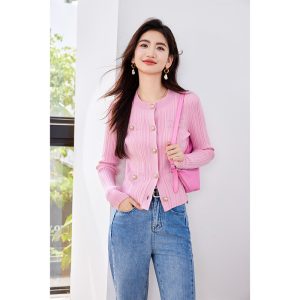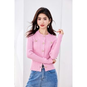 Women’s Spring and Autumn Plain Cardigan Long Sleeves Sweater Coat