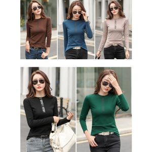 Women’s Round Neck Autumn and Spring Slim Plain Fashionable Long Sleeves T-Shirt