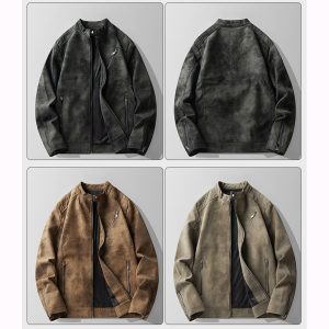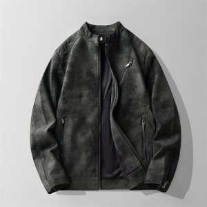 Men’s Motorcycle Jacket Zip Faux Leather Jackets Crew-Neck Jacket Coat