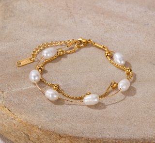 Stylish Stainless Steel Double Layer Imitation Pearl Bracelet Gold Color Women’s Bracelet Daily Wear Jewelry