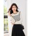 Women’s Spring and Autumn Striped Long Sleeves Sweater Coat