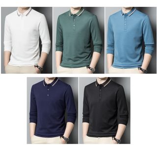 Men’s Autumn Solid Long Sleeve Polo Shirt