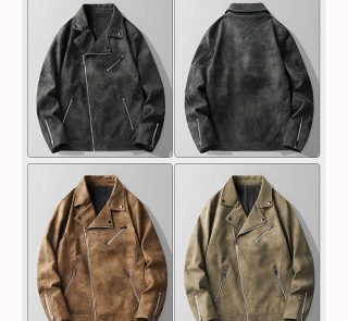 Men’s Motorcycler Jacket Zip Faux Leather Jackets turndown Collar Bike Jacket Coat