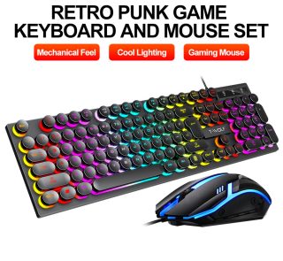 Colorful Backlight 104 Keys Punk Round USB Wired Gaming Keyboard Mouse Combos
