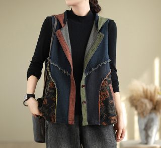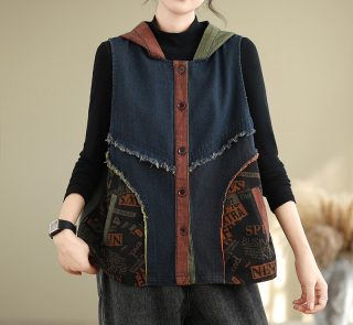 Women’s Spring and Autumn Plain Vest Denim Jacket Fashionable Coat