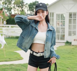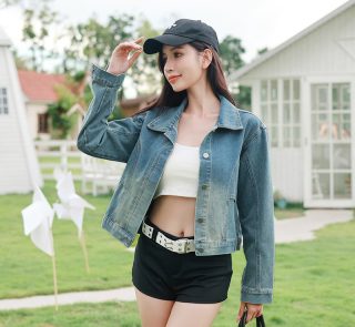 Women’s Spring and Autumn Plain Long Sleeves Denim Jacket Fashionable Coat