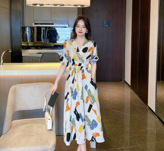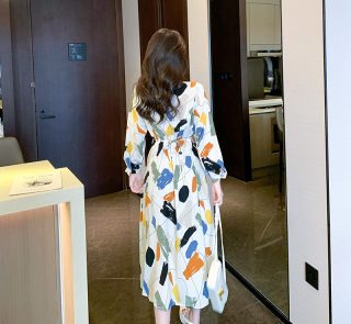Women’s Spring and Autumn Patterned Long Sleeves Dress