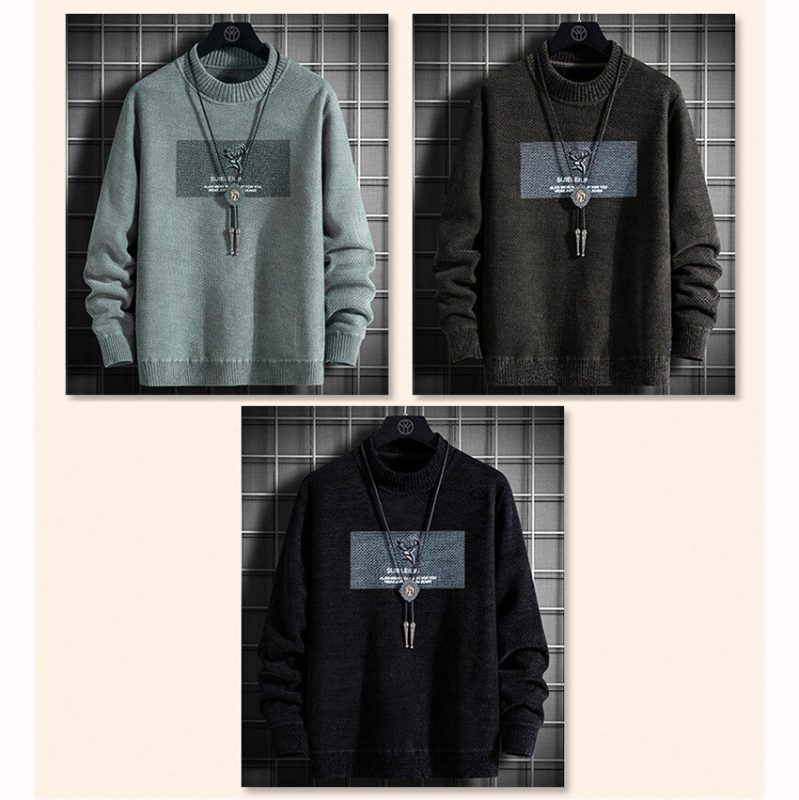 Men’s Winter Thicker Casual Crew-Neck Pullover Knitted Sweaters,Inner Polyester Velvet