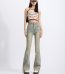Women’s Floral High Waist Loose Denim Jeans Fashionable Long Bell-Bottom Pants