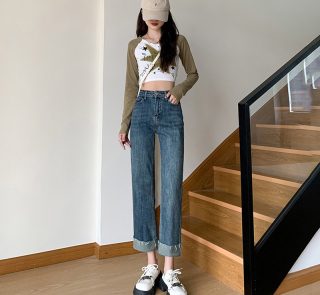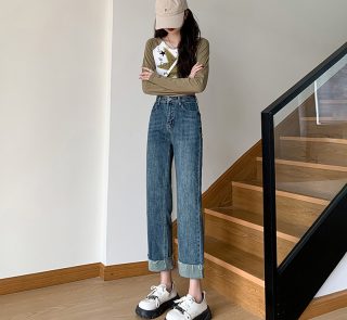 Women’s High Waist Loose Denim Jeans Fashionable Long Pants