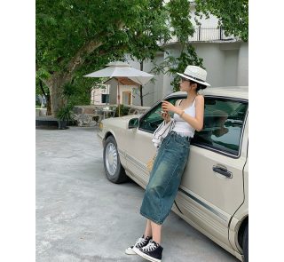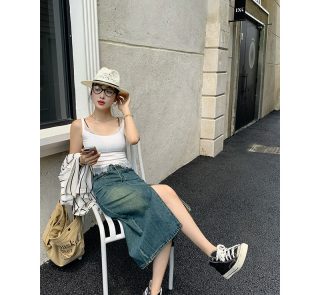 Womne’s Summer Dark Blue Slit Denim Jeans Fashionable Skirt