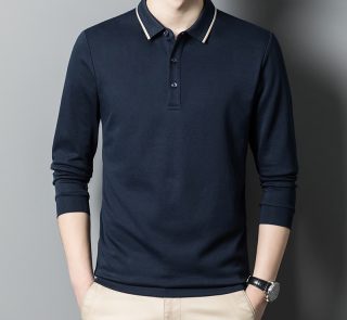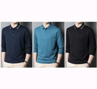 Men’s Autumn Solid Long Sleeve Polo Shirt