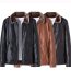 Men’s Solid Zip Faux Leather Jackets Lapel Polar Fleece PU Jacket Coat