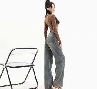 Women’s Plain High Waist Loose Denim Jeans Fashionable Long Pants