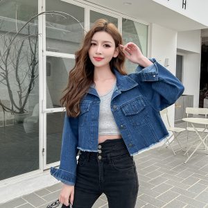 Эмэгтэйчүүдийн хавар намрын энгийн урт ханцуйтай жинсэн хүрэм загварлаг цув