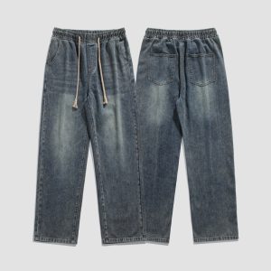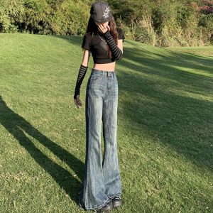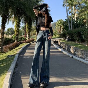 Эмэгтэйчүүдийн энгийн өндөр бэлхүүстэй сул жинсэн өмд Загварлаг урт өргөн хөлтэй өмд