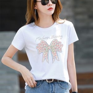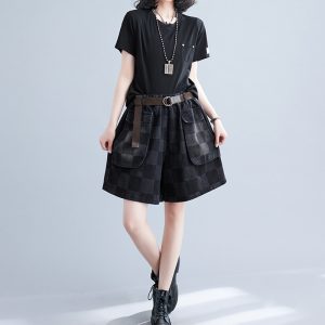 Эмэгтэйчүүдийн зуны цүнхтэй загварлаг сул хээтэй цамц