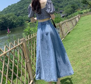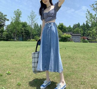 Эмэгтэйчүүдийн өндөр бэлхүүстэй энгийн банзал Загварлаг жинсэн банзал