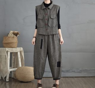 Эмэгтэйчүүдийн энгийн хантааз Загварлаг цув судалтай гарем костюм