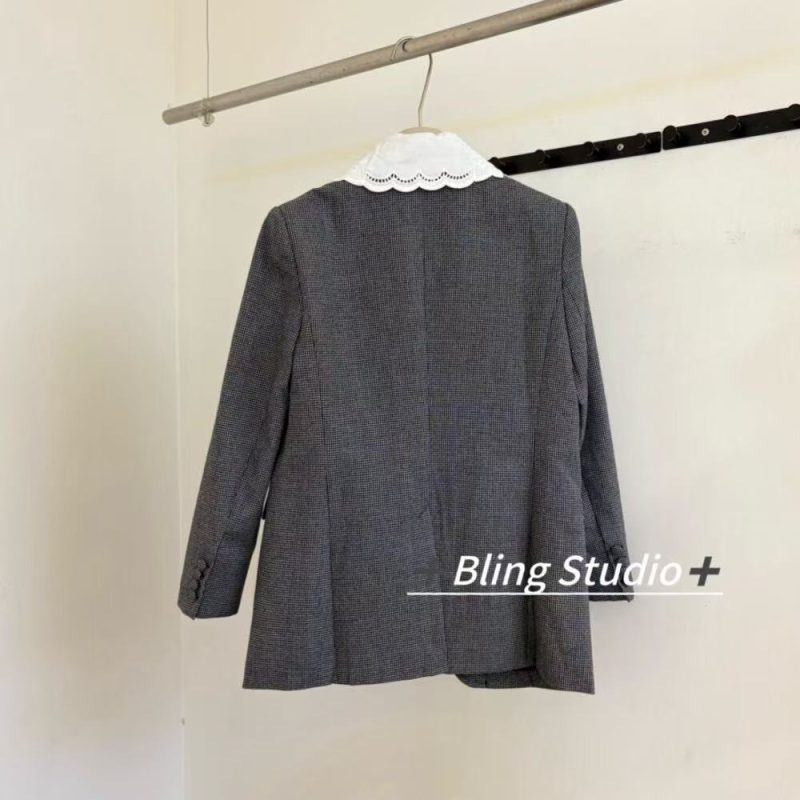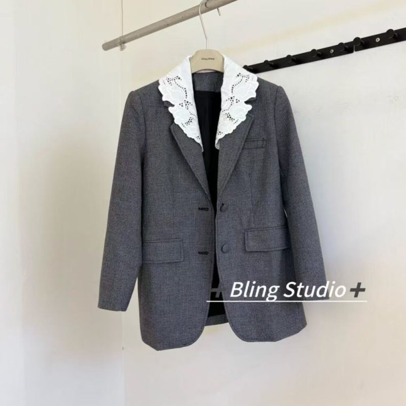 Зөөврийн нэхсэн хүзүүвчтэй, мөрний дэвсгэртэй, шулуун өмсгөлтэй костюм хүрэм