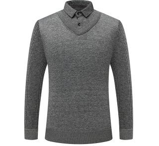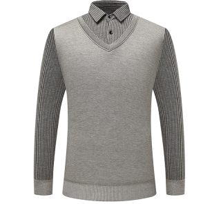 Эрэгтэй судалтай зузаан урт ханцуйтай V хүзүүвчтэй хуурамч 2 ширхэг пуловер цамц