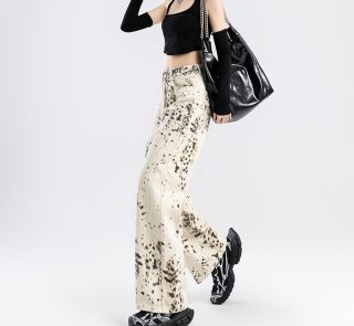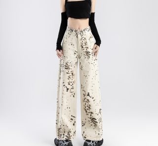 Эмэгтэйчүүдийн хавар намрын хээтэй өндөр бэлхүүстэй сул загварлаг урт өмд Denim жинсэн өмд