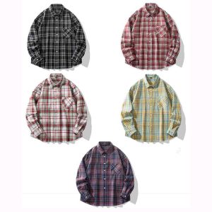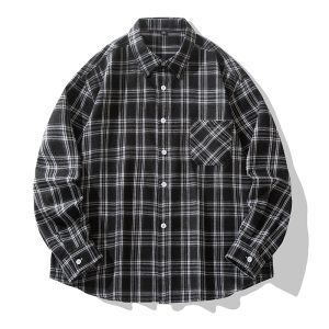 Эрэгтэй намрын энгийн урт ханцуйтай plaid цамц