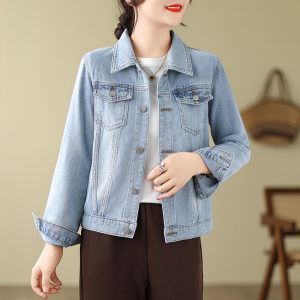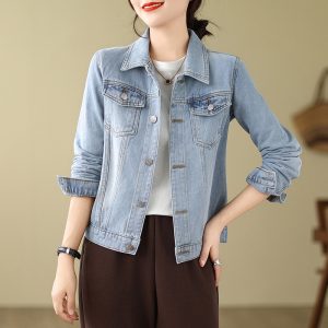 Эмэгтэйчүүдийн хавар намрын энгийн урт ханцуйтай жинсэн хүрэм загварлаг цув