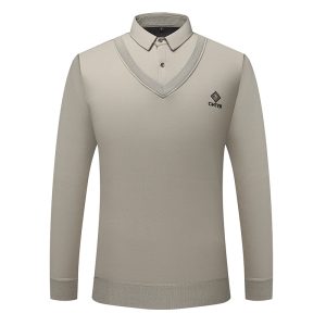 Эрэгтэй хатуу зузаан урт ханцуйтай V хүзүүвчтэй хуурамч 2 ширхэг пуловер цамц
