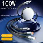 Home clothing&fashion 【100W Retractable Cable】3-in-1 Aluminum Charging Cable | 110cm Self-Coiling | Triple Ports (Micro-USB/Lightning/Type-C) Fast Charge