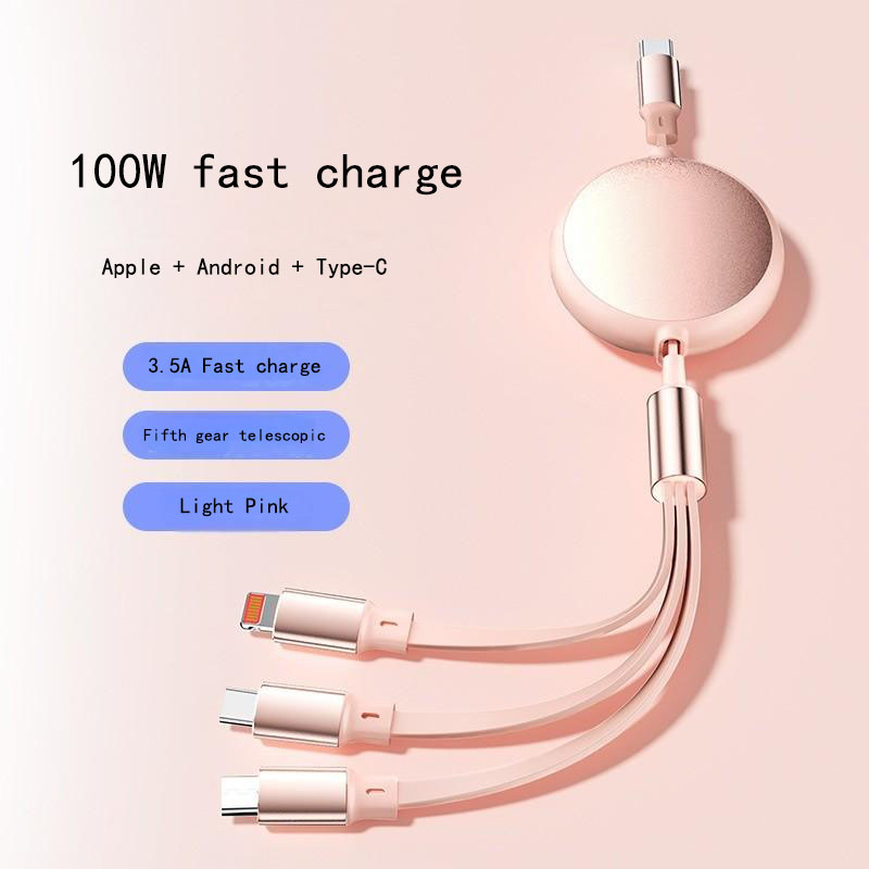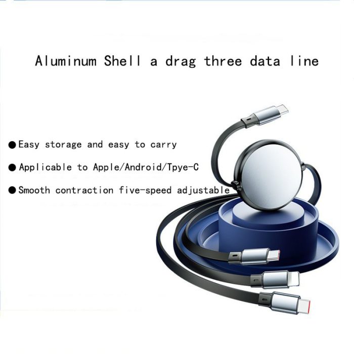 【100W Retractable Cable】3-in-1 Aluminum Charging Cable | 110cm Self-Coiling | Triple Ports (Micro-USB/Lightning/Type-C) Fast Charge - mongoyia
