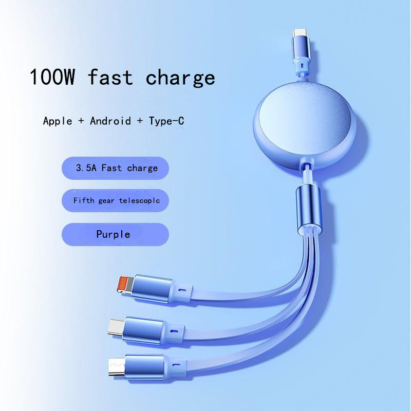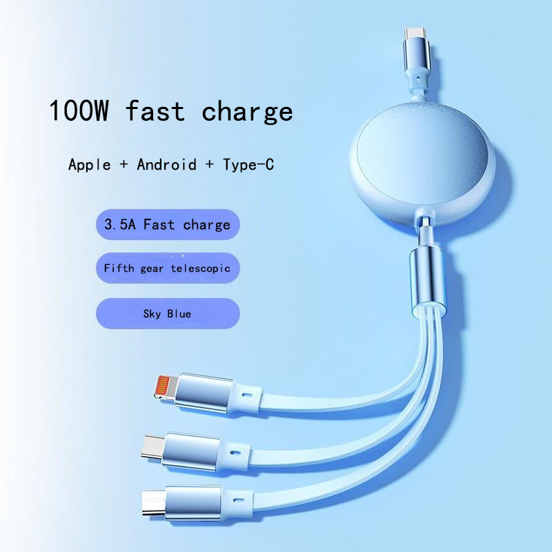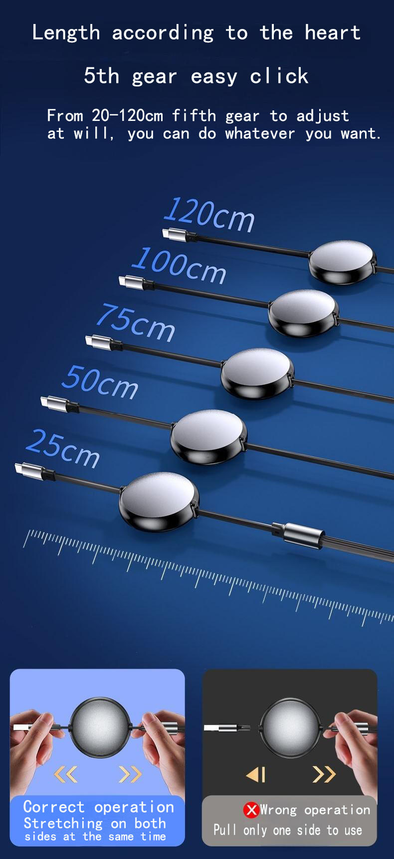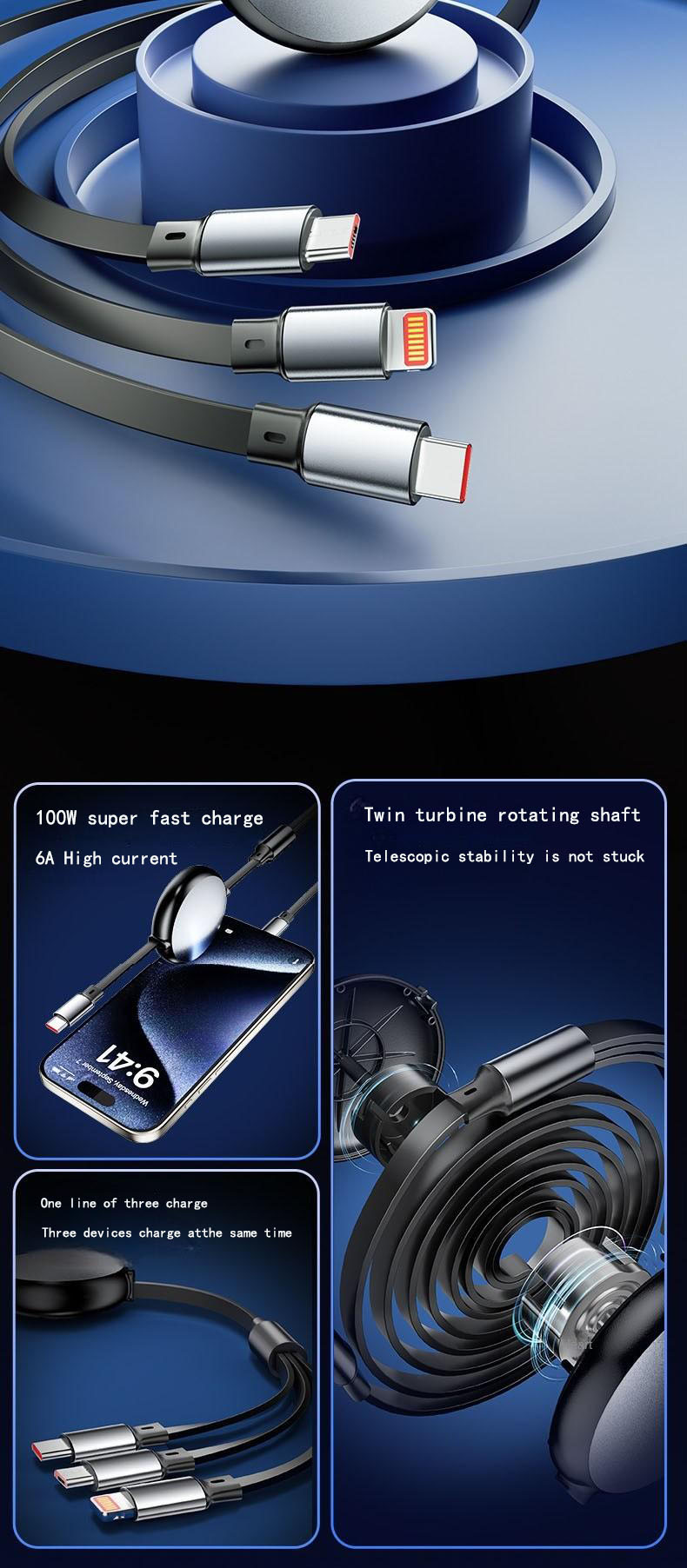 Home clothing&fashion 【100W Retractable Cable】3-in-1 Aluminum Charging Cable | 110cm Self-Coiling | Triple Ports (Micro-USB/Lightning/Type-C) Fast Charge