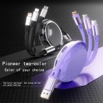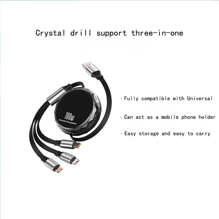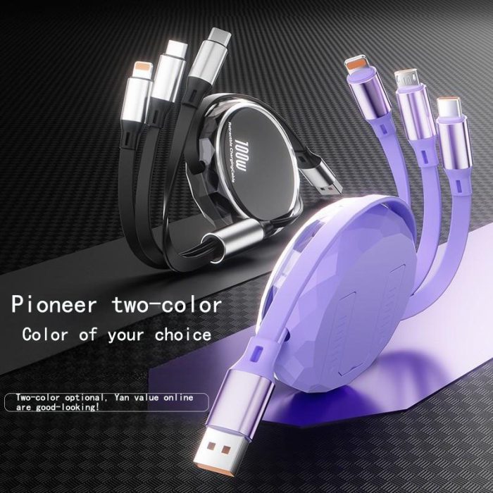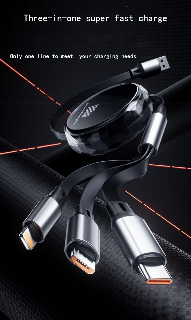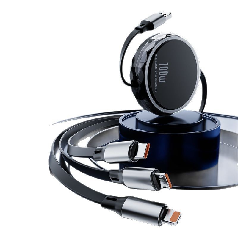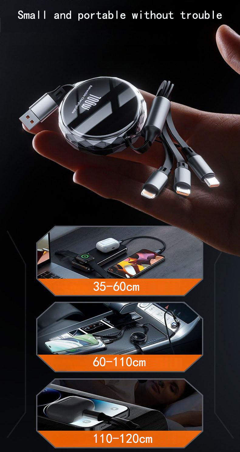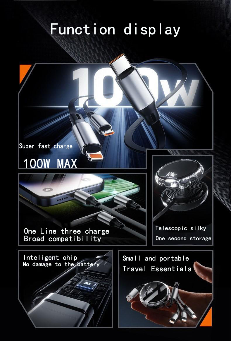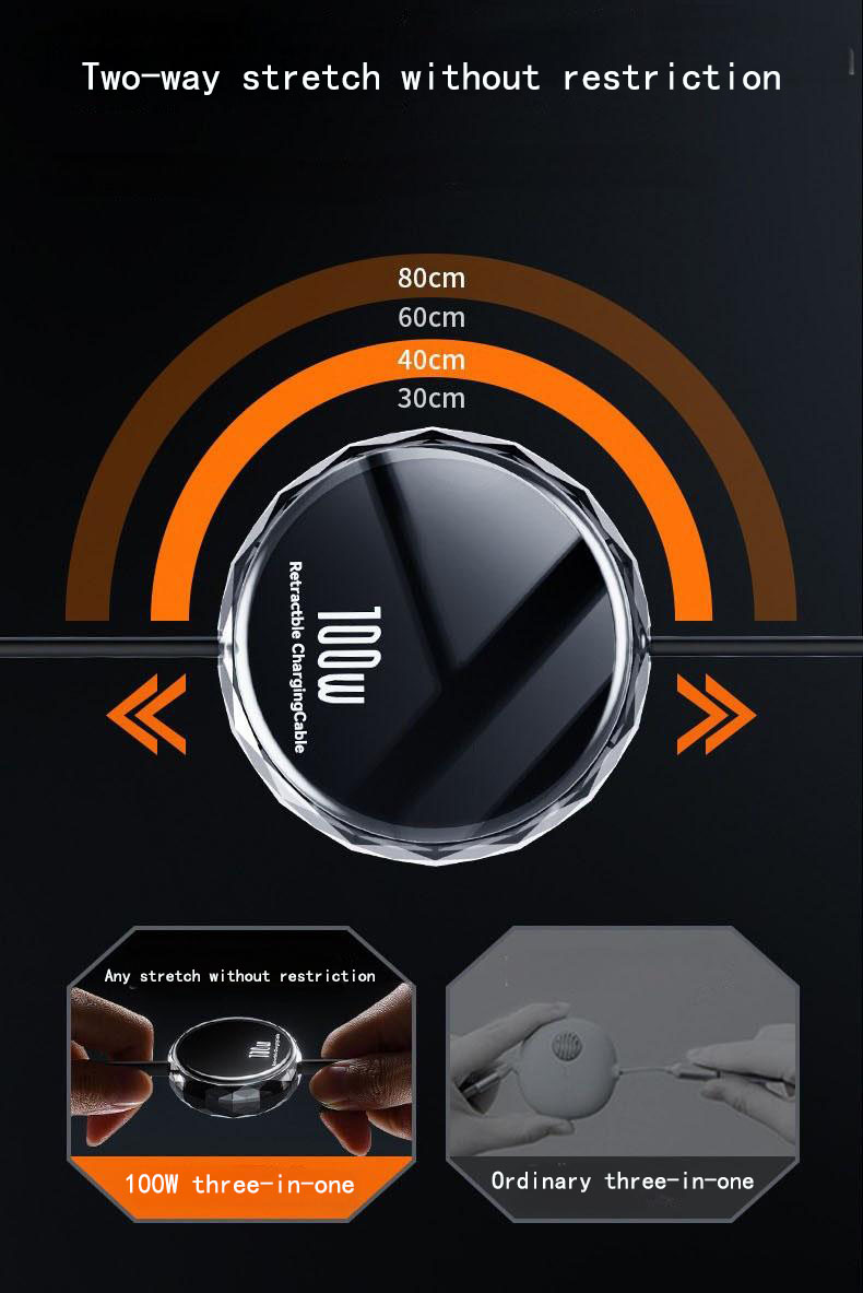 【100W Retractable Cable with Stand】3-in-1 Silicone Charging Cable | Built-in Phone Stand, 110cm Self-Coiling | Mirco/Lightning/Type-C Ports