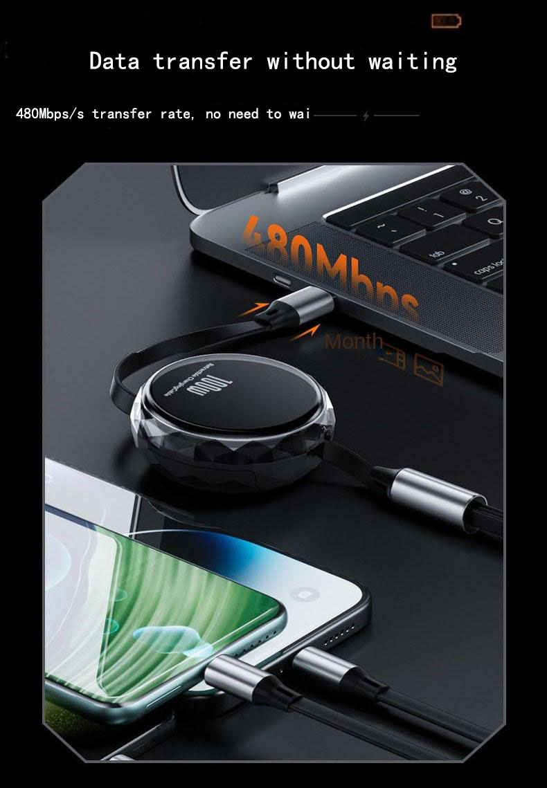 A gentle pull extends the cable to 110cm for use; it retracts automatically for compact, tangle-free storage. It’s the ultimate solution for a clutter-free desk. - 65W PD Fast Charging | Power Up in a Flash