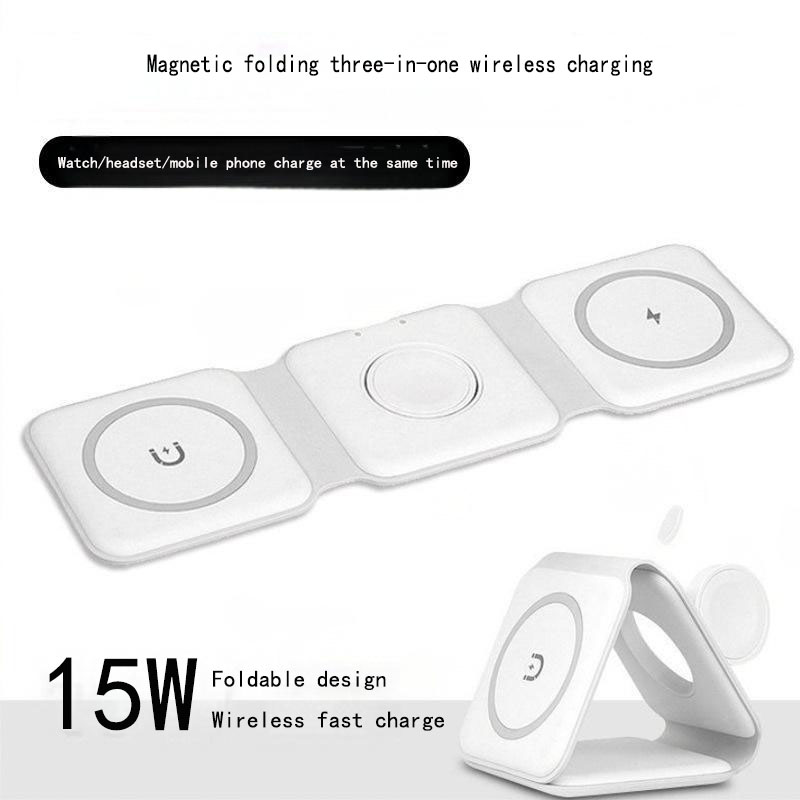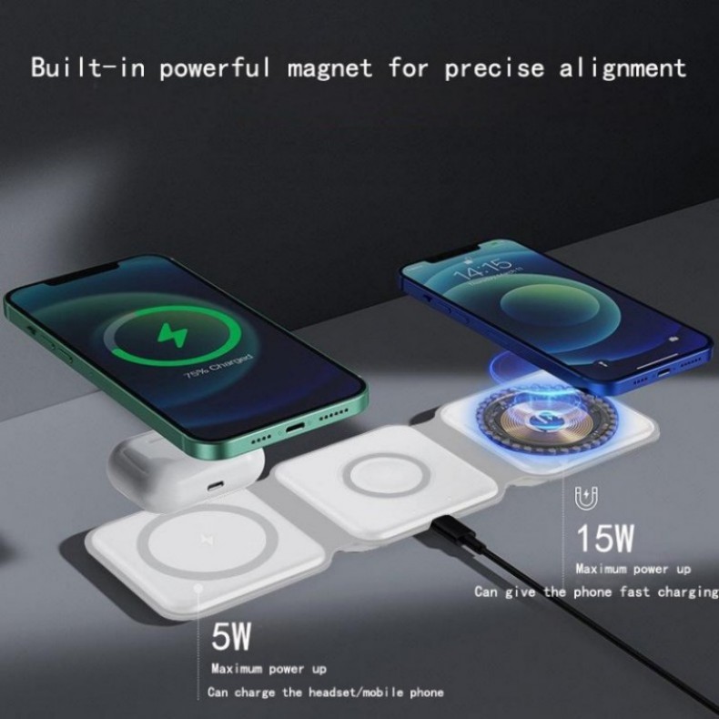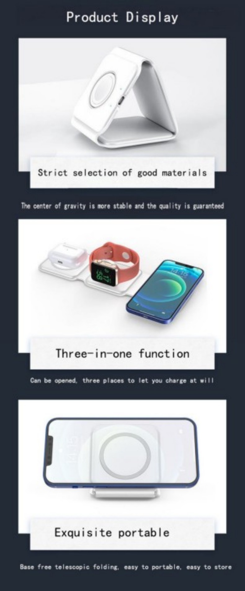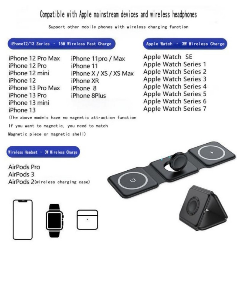 【3-in-1 Magnetic Folding Wireless Charger】15W Fast Charging Station, Multi-Device Power Hub
