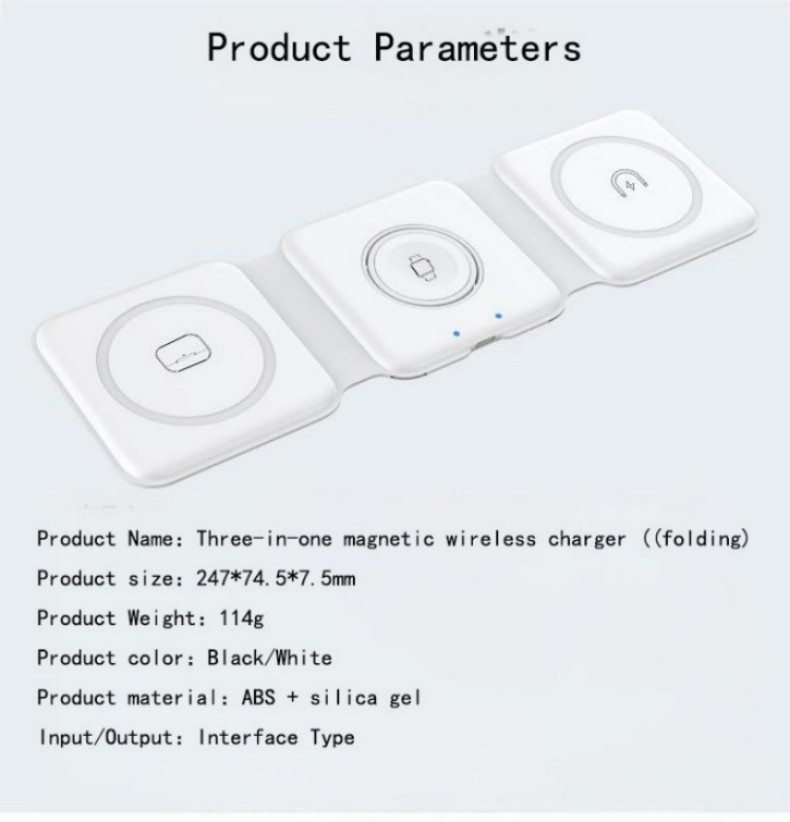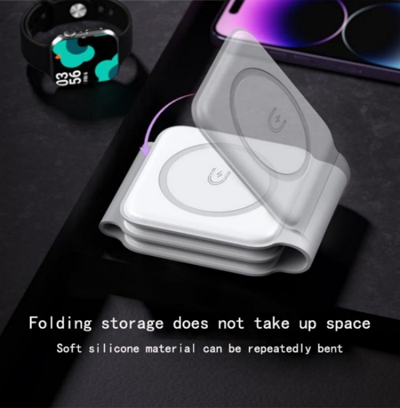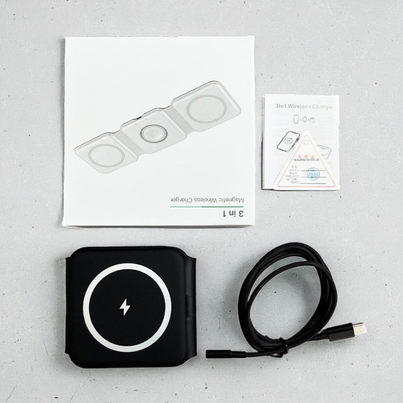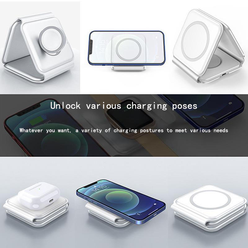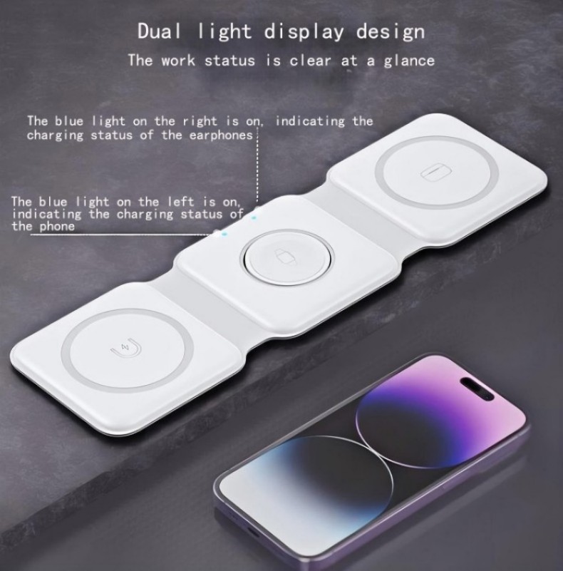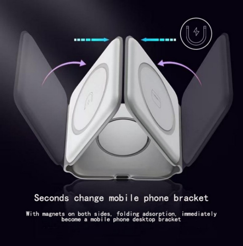 【3-in-1 Magnetic Folding Wireless Charger】15W Fast Charging Station, Multi-Device Power Hub