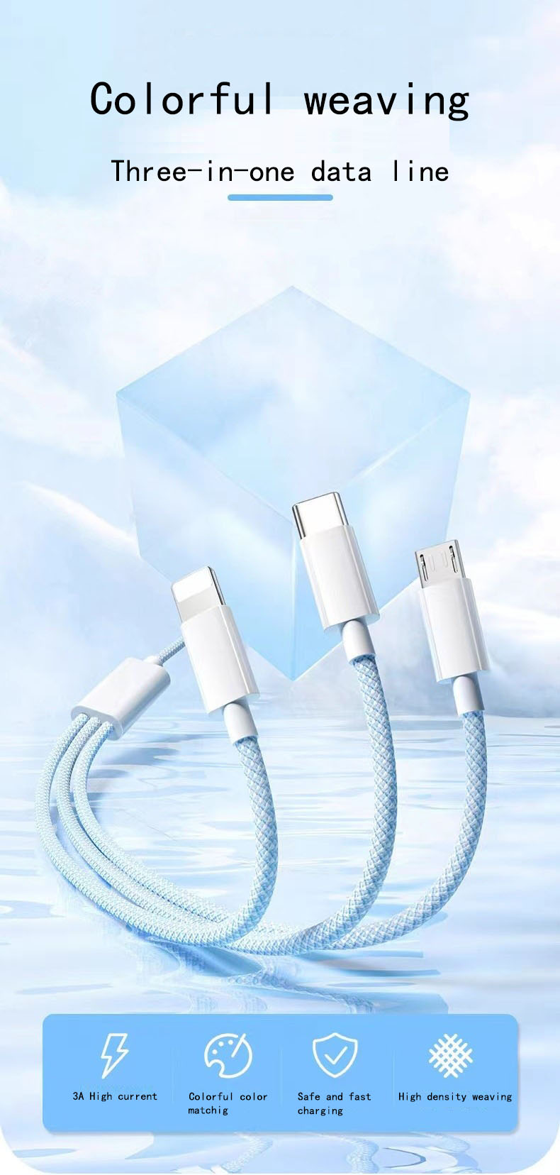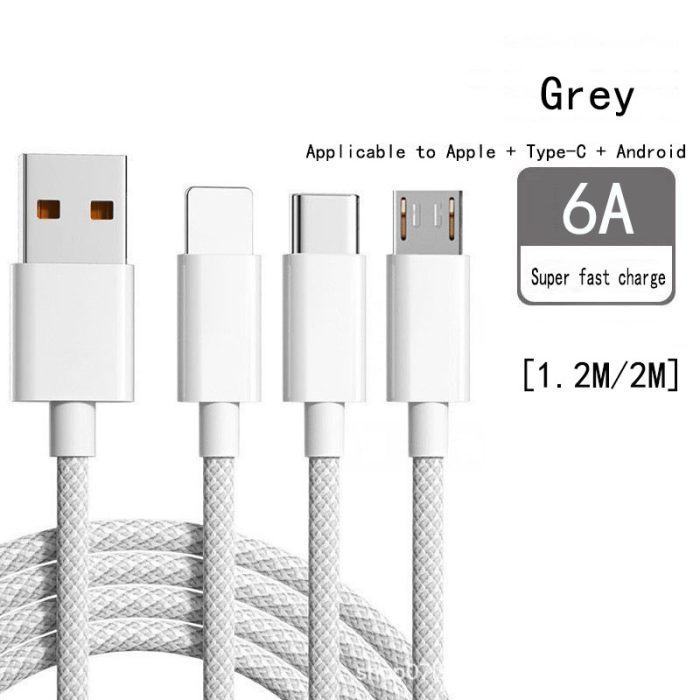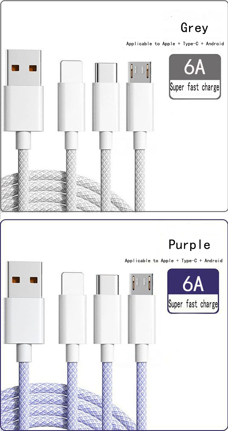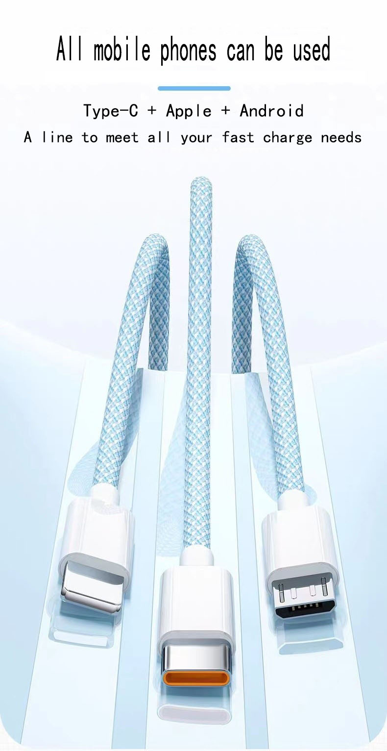 【66W 3-in-1 Charging Cable 】Nylon Braided Cable | 120cm/200cm Lengths | Triple Ports (Lightning/Type-C/Micro) Simultaneous Fast Charge
