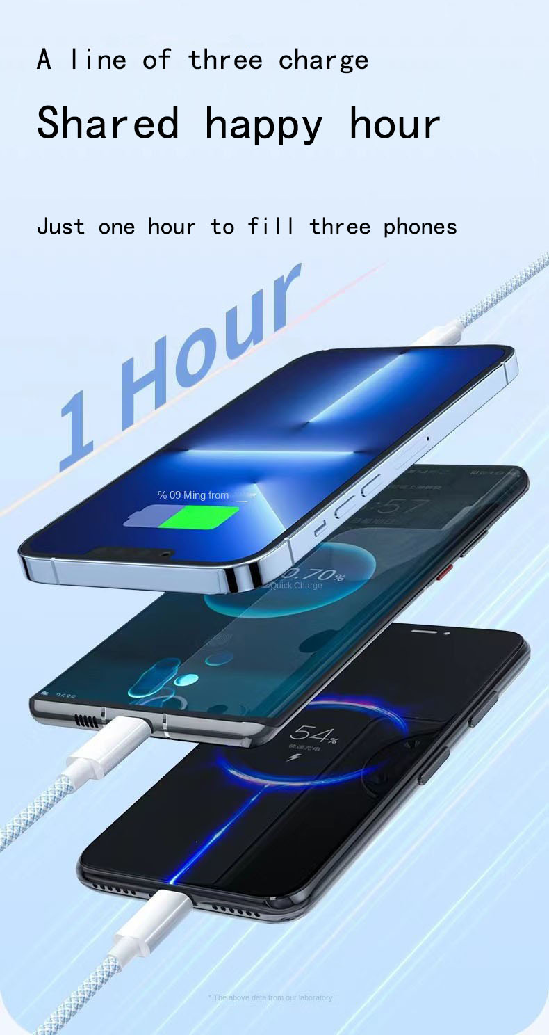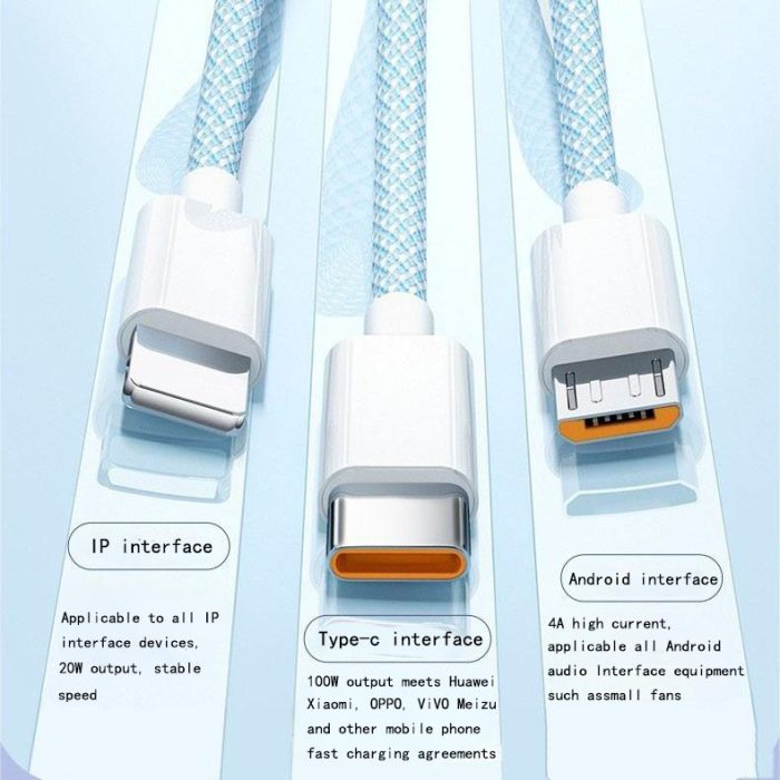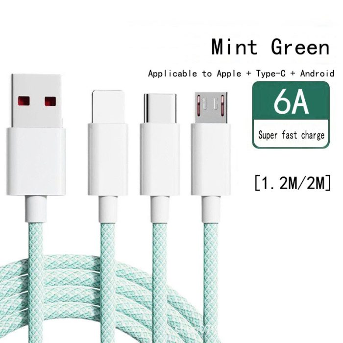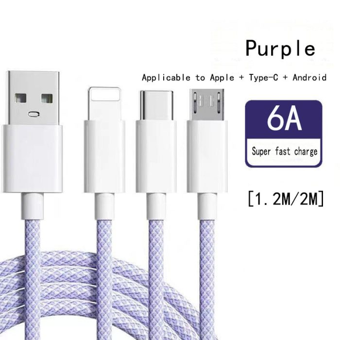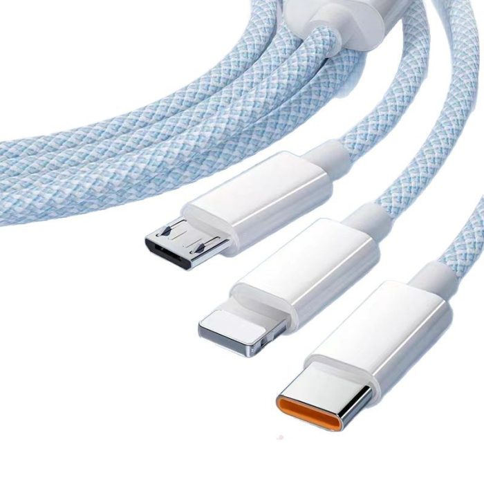 【66W 3-in-1 Charging Cable 】Nylon Braided Cable | 120cm/200cm Lengths | Triple Ports (Lightning/Type-C/Micro) Simultaneous Fast Charge