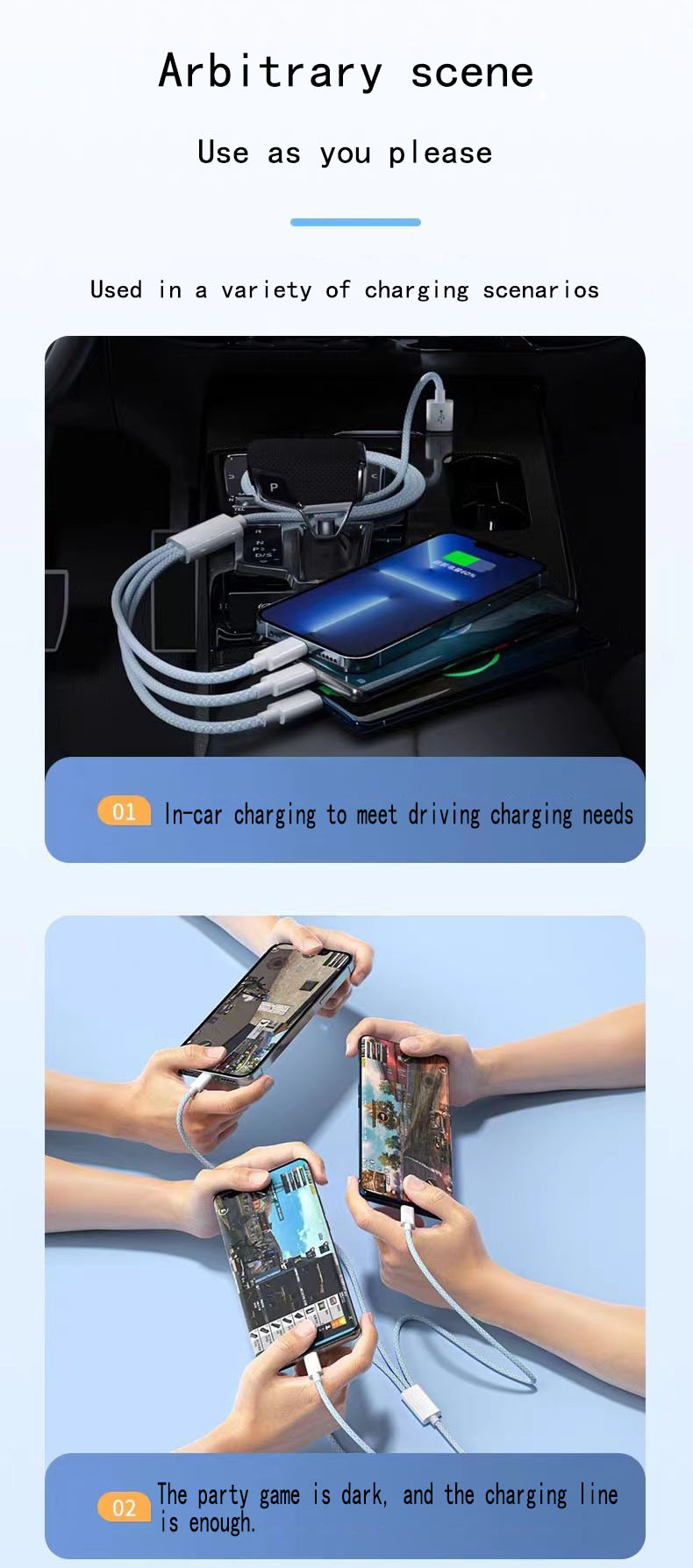 Triple-protected: a fray-resistant nylon braid, a flexible TPE core for memory-free bending, and rugged ABS connectors. It’s built to survive daily pulls, twists, and drops. - Universal Compatibility | Your All-in-One Charging Manager