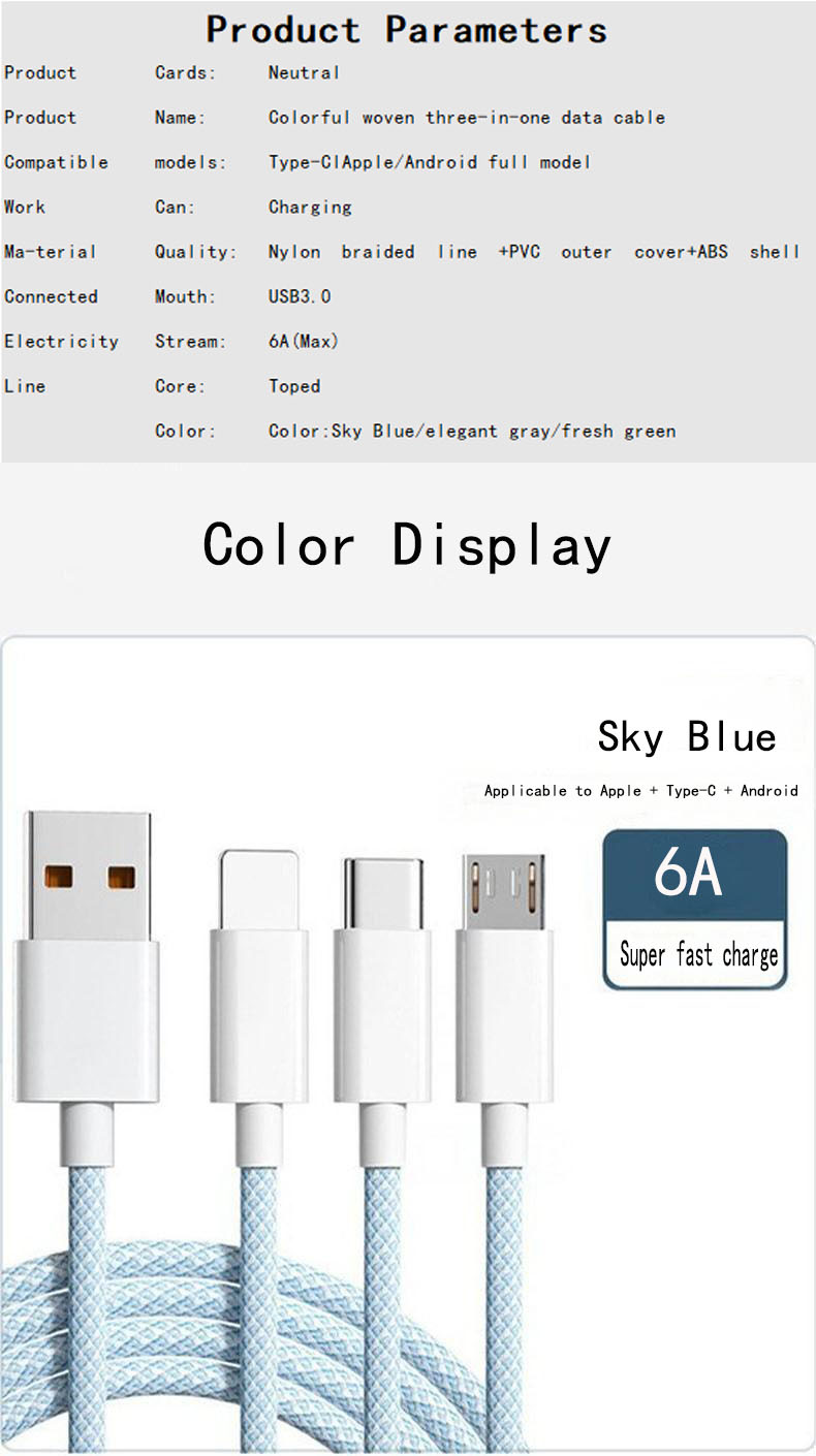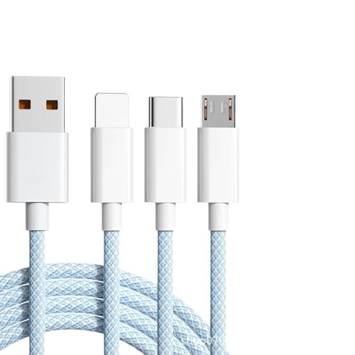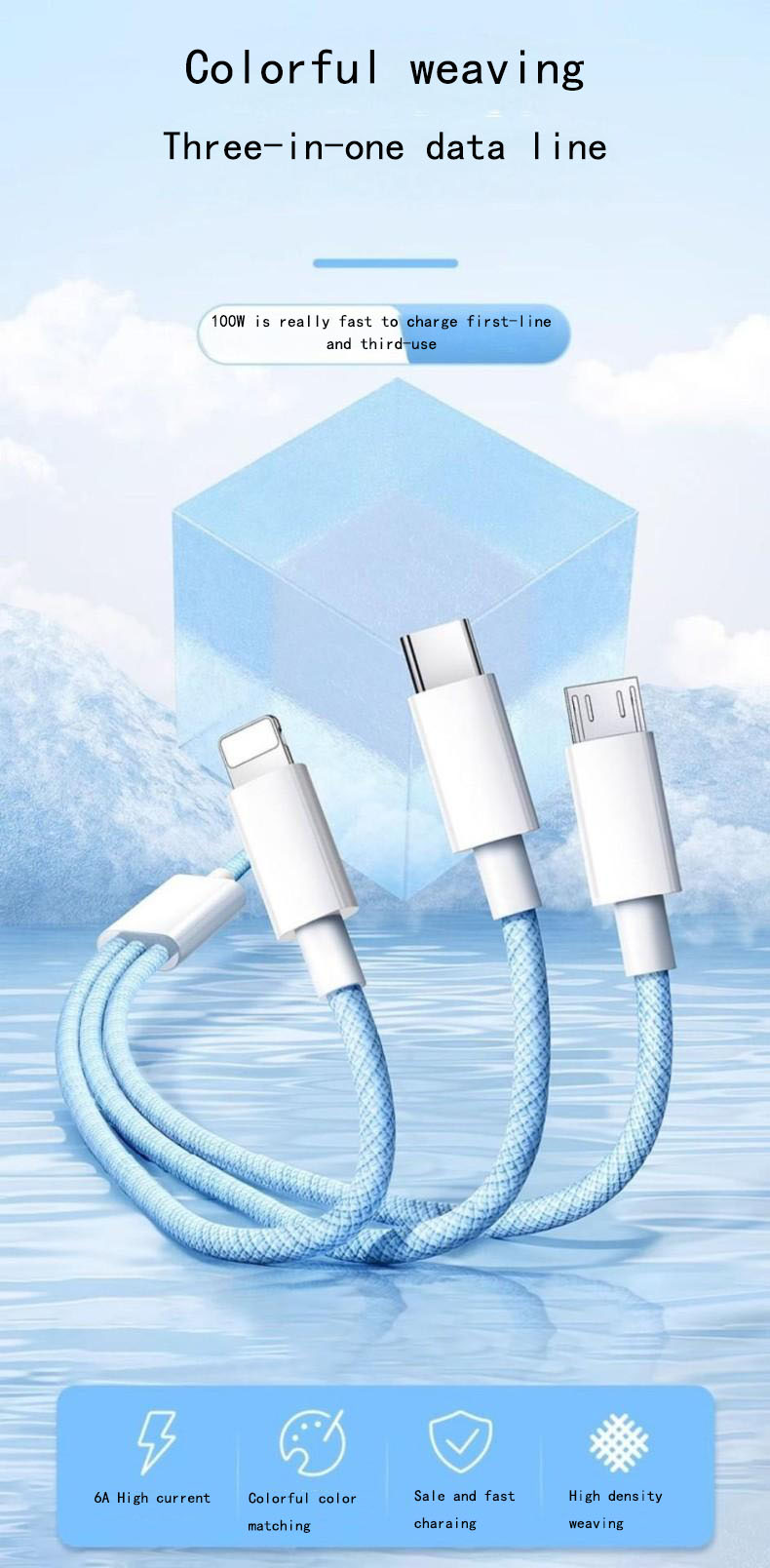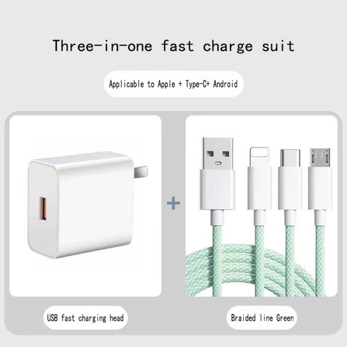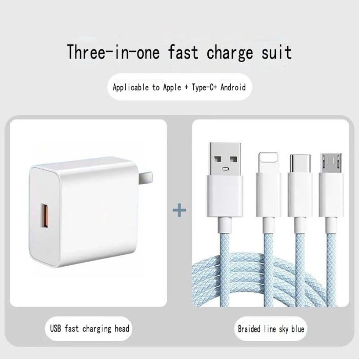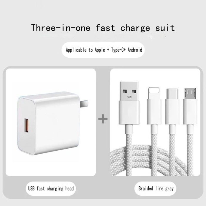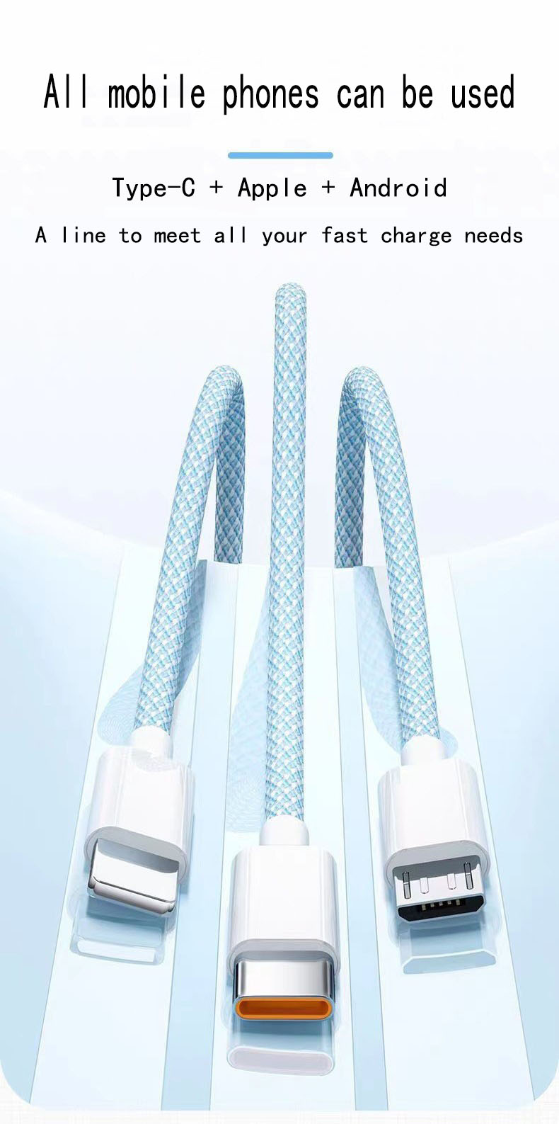 【66W Charging Kit】GaN Charger & 3-in-1 Braided Cable|120cm/200cm Length|Triple Ports (Lightning/Type-C/Micro) Simultaneous Fast Charge