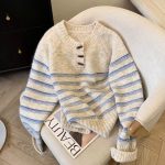 Home clothing&fashion baby's clothing tops 羊驼绒牛角扣条纹圆领宽松慵懒风软糯针织衫