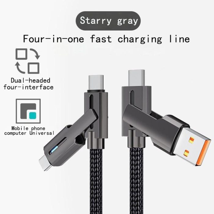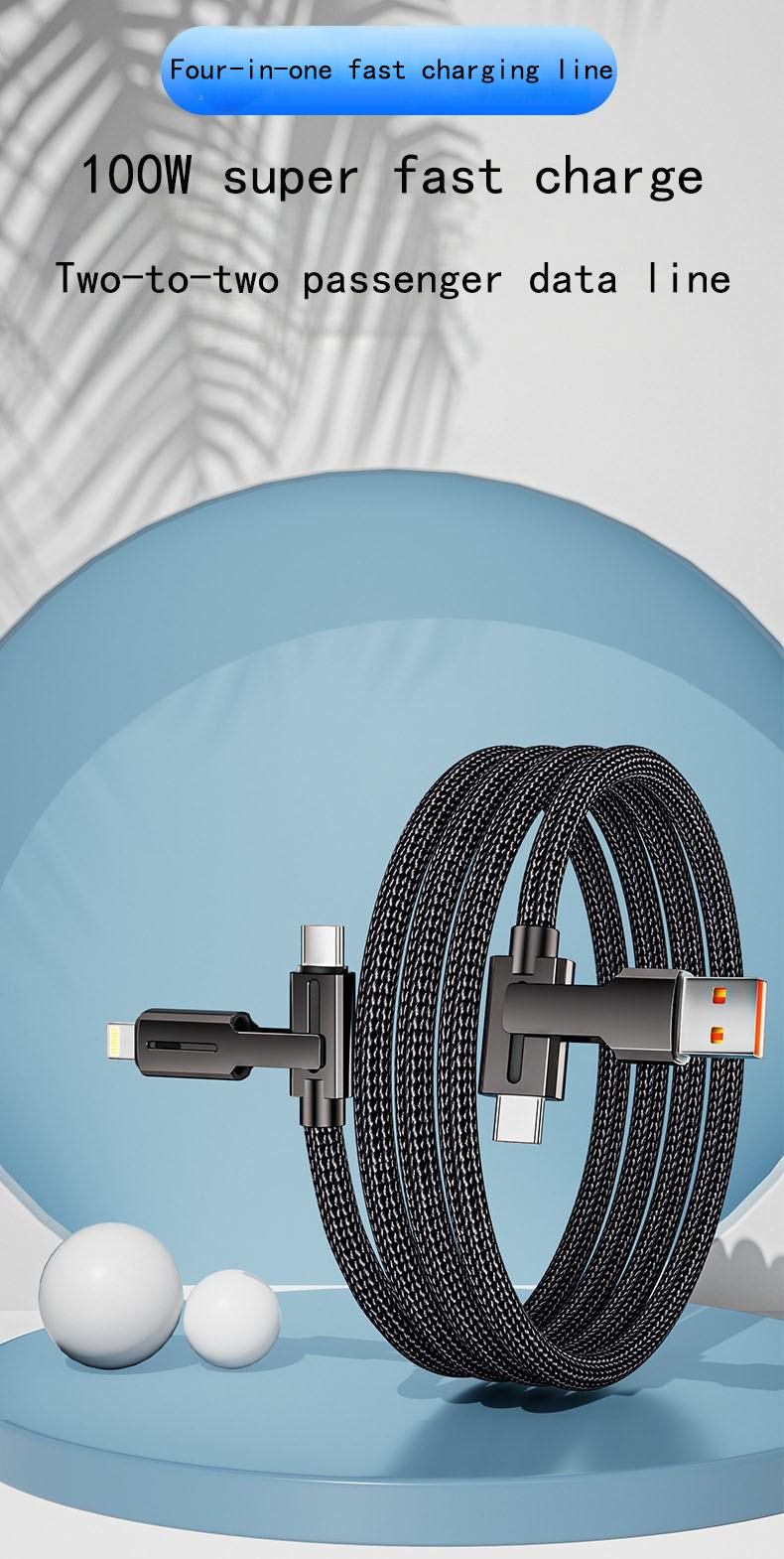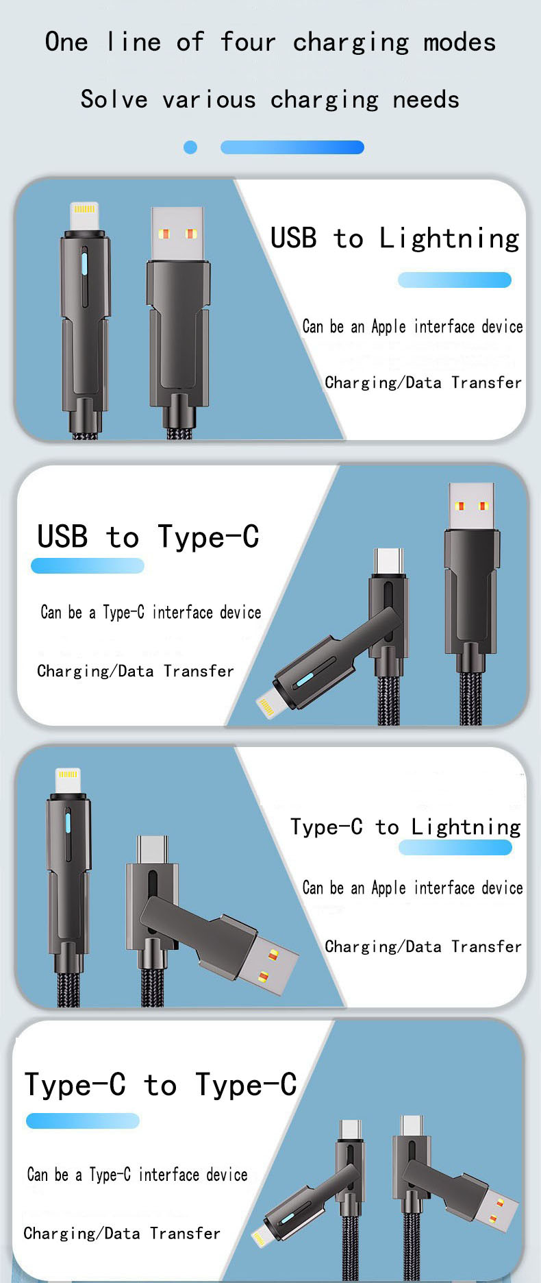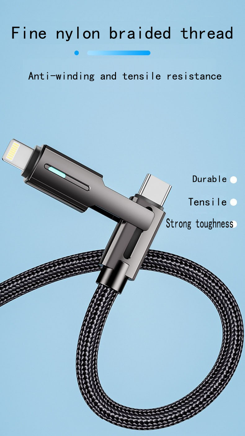 100W 2-in-2 Ultimate Cable Dual System Charging & Sync Cable | 120cm/200cm Nylon Braided | 4-Mode (USB/Type-C to Lightning/Type-C) Fast Charge