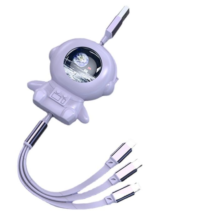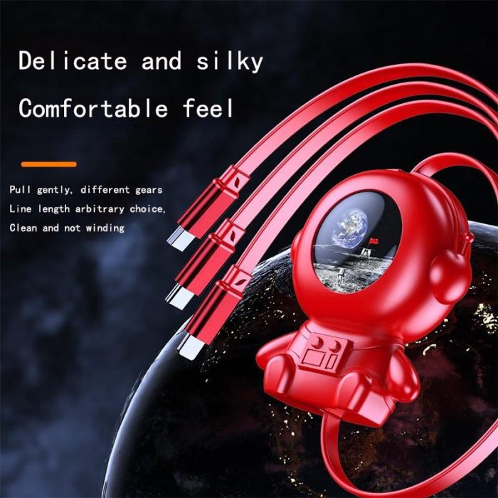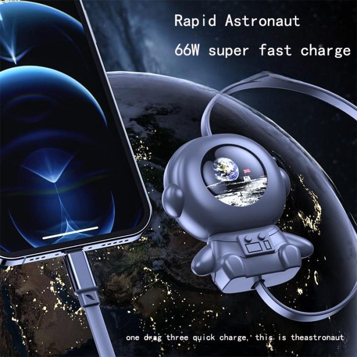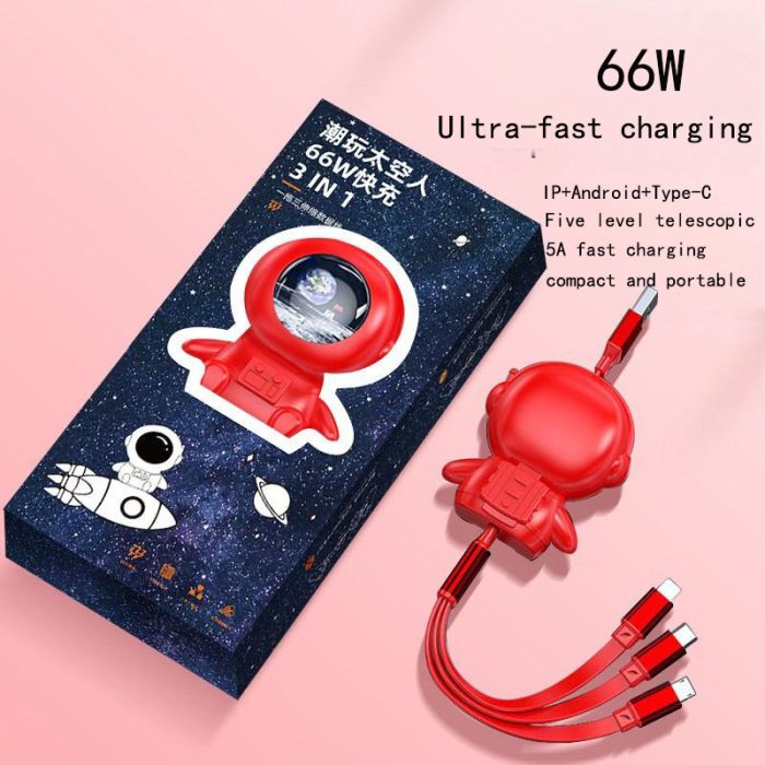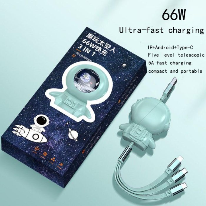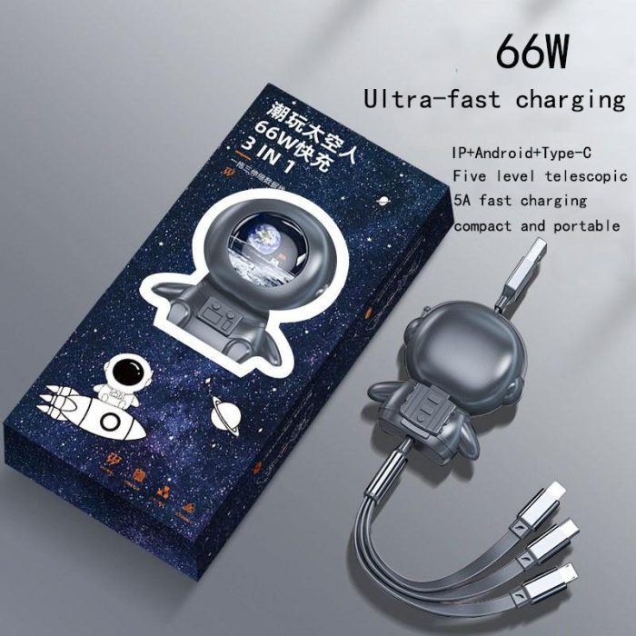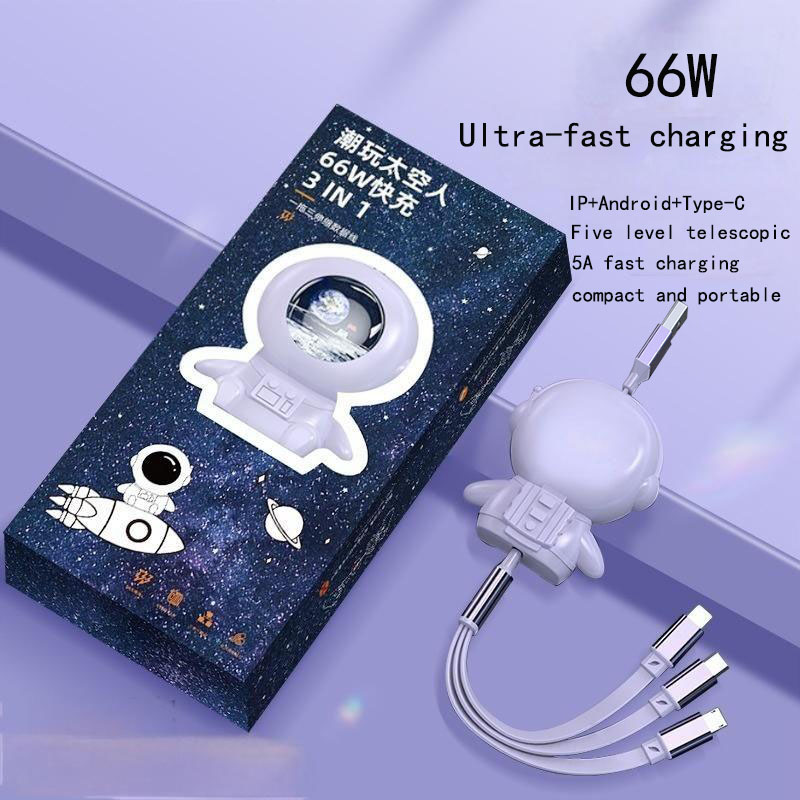 Cool Astronaut-Themed PD66W Fast Charging Cable! 3-in-1 Retractable Design, Efficient Charging & Data Transfer, Multi-Device Compatible, Tech-Stylish!
