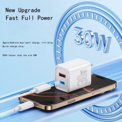 【30W GaN Fast Charger】Mini Portable Wall Charger | Dual Port (USB-C + Type-C) for iPhone 15/14/13, Samsung Phone & Tablet