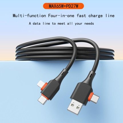 65W Silicone Cable 2-in-2, 4-Port Charging Cable,120cm Skin-Friendly Silicone,USB/Lightning/Dual Type-C Multi-Device Fast Charge