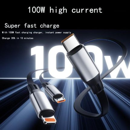 - 100W to 3 Devices at Once | Declutter Your Desk Features 3 independent ports (Lightning/Type-C/Micro) to charge your iPhone, Android tablet, and earbuds simultaneously. With a total 100W output, it intelligently divides power for optimal speed to each device.